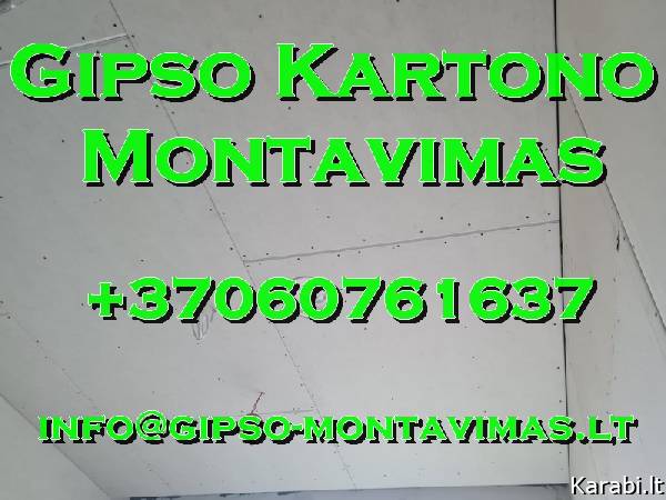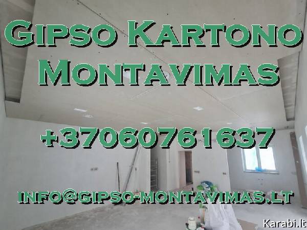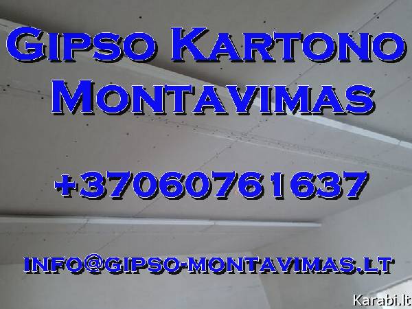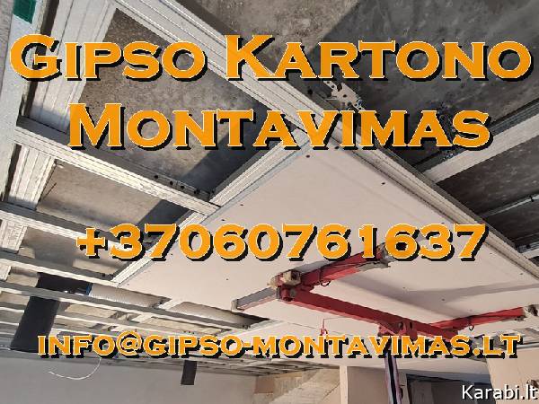 montuojant įvairiausias nestandartines tiek standartines gipso kartono konstrukcijas. Darbą atliekame, profesionaliai, greitai, atsižvelgdami į kokybę. Dirbame pagal KNAUF technologiją. Atliekame šiuos gipso kartono, gipskartonio montavimo darbus. Pakabinamų lubų montavimas (horizontalių, šlaitinių, daugiašlaičių, figūrinių, ovalių, pagal knauf technologijas), Pertvarų montavimas, Užuolaidų nišos, dekoratyvinės nišos, apšvietimų nišos, Šešėlinės siūlės, deformacinės siūlės, Įvairios dekoratyvinės detalės, Įleidžiamų šviestuvų montavimas, difuzorių ir kitų elemėntų, Gipso kartono frezavimas Originalios gipso kraštinės formavimas Konsultacija ir preliminari sąmata nemokama. Sudarome reikiama medžiagų sąraša pagal susitarimą, Kainos derinamos ir prieinamos kiekvienam. Stengiamės būti lankstus, galimos derybos atsižvelgiant į protingumo kriterijų. Kreipkitės +37060761637 El. paštas info@gipso-montavimas.lt Tinlapis www.gipso-montavimas.lt