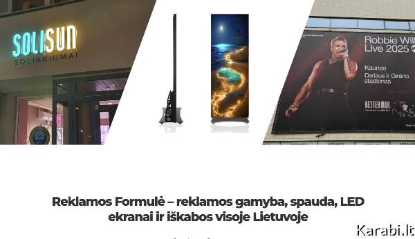 LED ekranai, reklamos gamyba, spauda visoje Lietuvoje - Reklamos-formule.comSkelbimo nr. 77203, įdėtas: 2025-07-23 · Perskaitė: 46