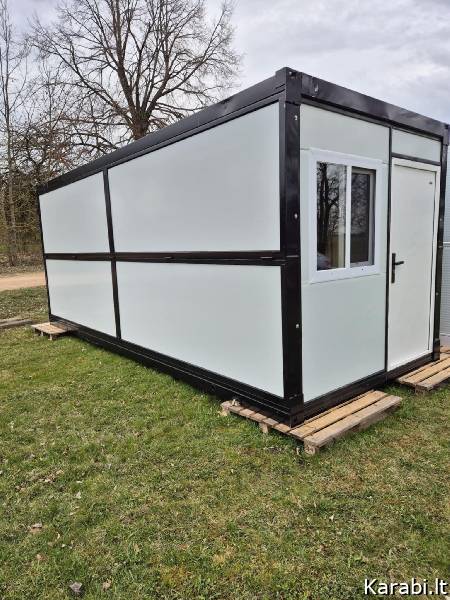 Moduliai apšiltinti (5 cm. sienos ir lubos), pilna elektros instaliacija (įvadas, apšvietimas, 2 dvigubos rozetės), rakinamos įėjimo durys, 2 varstomi langai. Modulio matmenys (PlotisXaukštisXilgis): 2,5x2,5x5,8 m. Svoris ~1 T. Kaina 2900 EUR + PVM. Vilniaus rajonas, Pikeliškės. Kaina: 2900 EUR