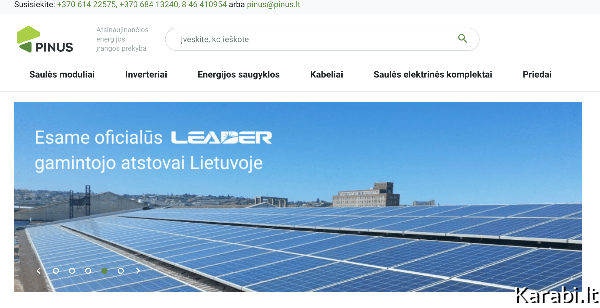 Tvari ir niekada nesibaigianti energija mūsų visų ateitis. Kuo greičiau tapsime jos dalimi, priimsime jos suteikiamas galimybes tuo greičiau prisidėsime prie žalesnės ateities, kuri yra visų mūsų rankose. Pinus LT, UAB yra oficialus Bluesun Solar saulės elektrinių komponentų atstovas Lietuvoje. Ilgametė patirtis, lankstus požiūris į klientus bei nuolatinis inovacijų siekimas mūsų kasdienybė. Suprantame, kad neturint patirties suprasti saulės elektrinių galimybes gali būti sunku. Mūsų tikslas padėti Jums ne tik įvertinti saulės elektrinių naudą verslui bei privačiam asmeniui, tačiau taip pat ir suteikti įrangą bei montavimo paslaugas, kurios leis žengti didelį bei efektyvų žingsnį tvaraus rytojaus link. Saulės elektrinių dalys saulės moduliai, inverteriai, baterijos, montavimo konstrukcijos, kabeliai ir optimizatoriai tiesiai iš gamintojo rankų į Jūsų namus.