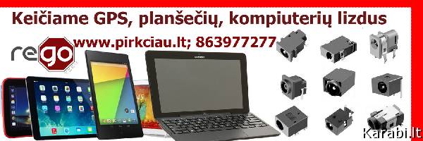 Daugiau informacijos: info@pirkciau.lt www.pirkciau.lt 863977277 *Prekyba DC, USB nešiojamųjų kompiuterių, lizdais SAMSUNG, ASUS, ACER, TOSHIBA, DELL, APPLE, FUJITSU, PACKARD BELL, LENOVO, SONY, HP *Prekyba: Planšetinių kompiuterių USB MINI, USB MICRO, USB lizdais; *Prekyba: navigacijų lizdais; *Prekyba įkrovikliais, pakrovėjais, įkroviklių laidais; *Prekyba lizdais kitai kompiuterinei technikai. www.pirkciau.lt info@pirkciau.lt 863977277 Atvykite: Vilnaius 230, Šiauliai Kaina: 5 EUR