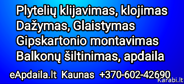 0602-42690 Plytelių klijavimas, klojimas Sienų, lubų - dažymas, glaistymas Gipskartonio montavimas Laminato, parketlenčių klojimas Balkonų šiltinimas