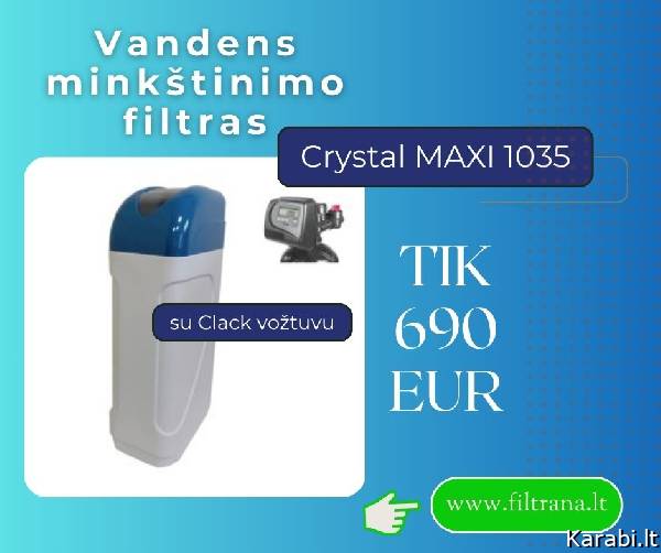 Mes turime sprendimą vandens minkštinimo filtras Crystal Maxi su Clack valdymo vožtuvu! Ką jis duoda? Pašalina vandens kietumą daugiau jokio kalkių sluoksnio ant virdulio, katilo ar dušo sienelių. Saugo boilerius, skalbimo mašinas, indaploves prietaisai tarnaus ilgiau. Minkštas vanduo švelnesnė oda, plaukai ir mažiau sunaudojama kosmetikos priemonių. Taupo energiją be kalkių katilas dirba efektyviau. Tinka 35 asmenų šeimai užtikrins pakankamą kiekį minkšto vandens visiems namų poreikiams. Akcija tik dabar už specialią kainą! Viso komplekto kaina: 690 Patikimas Clack vožtuvas (JAV gamyba) Kokybiška Lewatit katijonitinė derva Ilgaamžis sprendimas Jūsų namams Daugiau informacijos ir konsultacijos : www.filtrana.lt +370 617 49 017 #VandensFiltras #MinkštasVanduo #VandensMinkštinimas #Clack #Filtrana #SveikasVanduo #BuitinėTechnika #Namams #ŠvaresnisVanduo #Akcija Kaina: 690 EUR